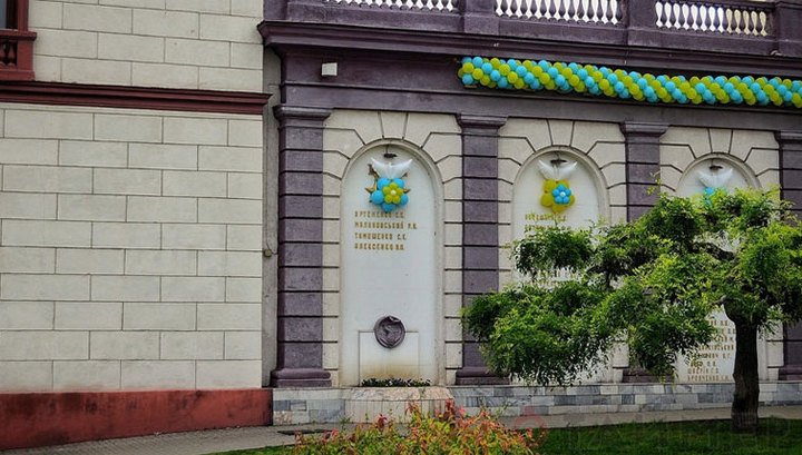 К визиту Порошенко Одесса закрыла стену Героев СССР желто-голубыми шарами