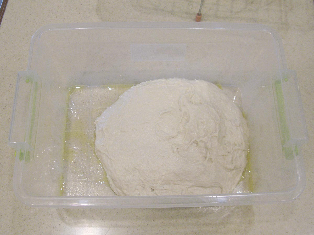 Добавляем соль, еще 5мин замеса, и 45 минут не трогать.