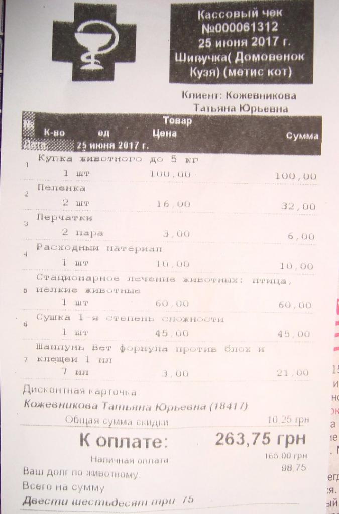 Сегодня заплатила последние 100 грн., что могла...Помогите Вылечить Кузю!