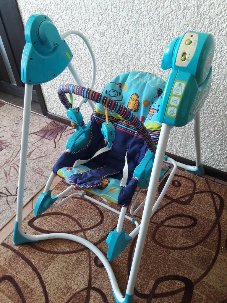 Продам нашу качелю Fisher Price Swing'n'Rocker. Причина: выросли и уже не пользуемся. Состояние очень хорошее, все работает. Если ребенок уснул в шезлонге, то есть подножка, которая позволяет поместить шезлонг в практически горизонтальное положение для удобства малыша. Цена 1500 грн. Возможен торг.