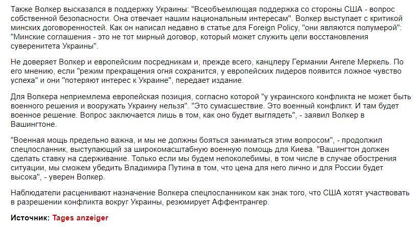 Курт Волкер фактически допускает применение американского оружия по Донбассу и Крыму