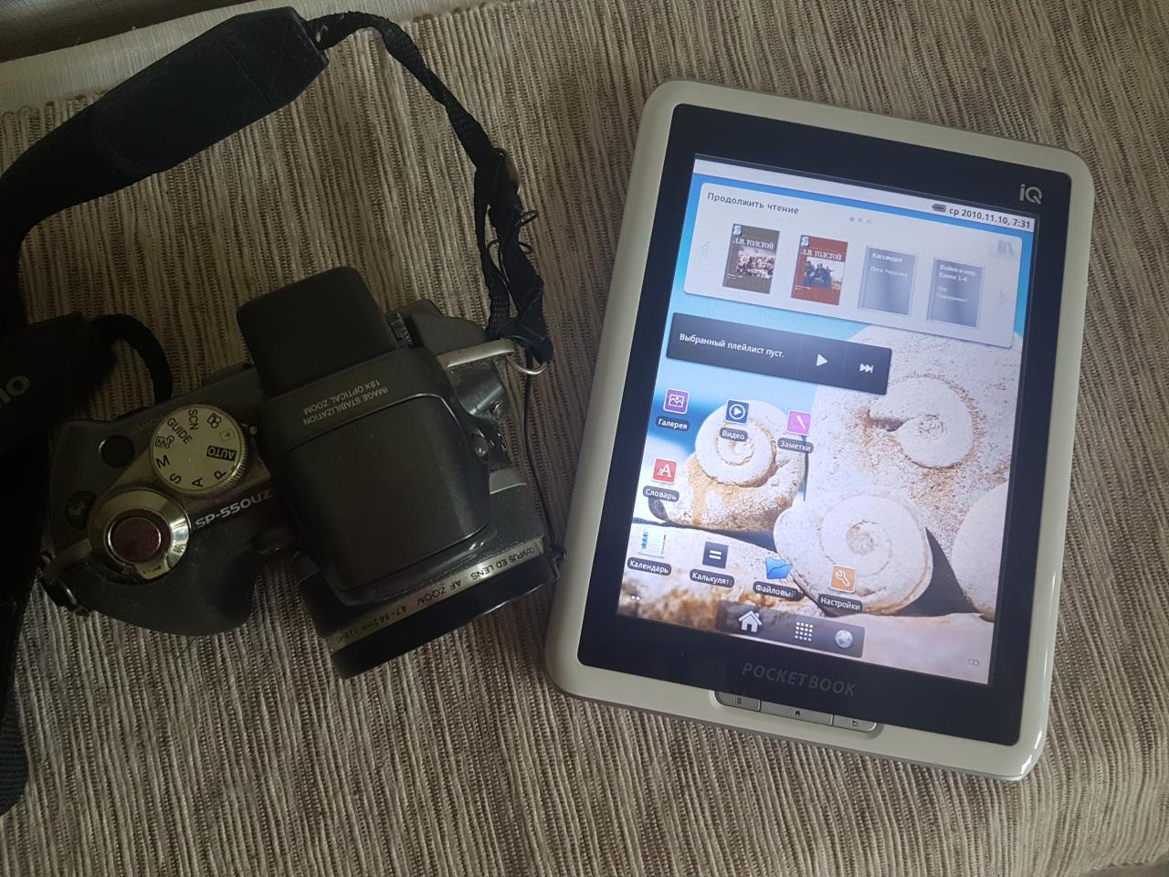 Простую цветную электронную книгу pocketbook ( можно читать книги, слушать музыку, просматривать фото, есть слот для карты памяти)