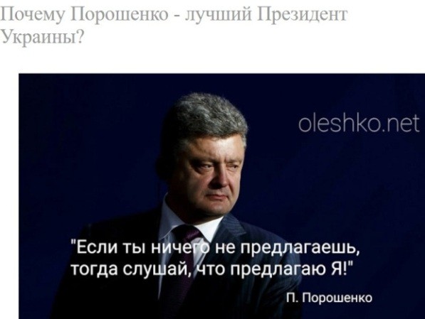 Точно, точно. Украинский свободолюбивый народ вопреки всем козням мерзкого путина выбрал в себе президенты Порошенко. И теперь наслаждается результатом.