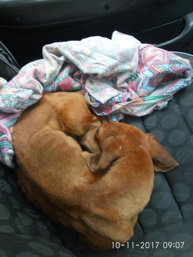 Добрый всем вечер. С нами произошла история, от которой я до сих пор не могу прийти в себя. Ничто не предвещало беды. Вчера мы с мужем и нашей собакой наконец то выбрались поехать один раз за сезон по грибы. Решили ехать в Херсонскую область, встали в 4 утра, загрузились и поехали. Приехали на место, вокруг глухие леса. Остановились обсудить где идём на грибалку и выпустит нашего ризена на утренний моцион. Открываю я дверь машины, выхожу, начинаю разминаться, дверь не закрываю и вдруг вижу, как из леса ковыляет что то рыженькое. Это "что то" проковыляло мимо меня и пытается залезть в машину на мое сиденье. С третьей попытки это удается. Я, честно говоря, аж глаза протёрла. Подхожу к машине и вижу дрожащий калачик из собаки на сиденье авто. При ближайшем рассмотрении это оказалась такса, рыжего окраса, но таксой ЭТО назвать очень сложно. Представьте себе дрожащий собачий скелет обтянутый кожей, вот что это было. Короче, мы её взяли на руки рассмотреть и в шоке положили на место - столько клещей на животном я ещё не видела. На месте, сколько смогли, столько сняли, я сбилась со счёта на третем десятке.... Посмотрели с мужем друг на друга и поняли, что грибалка отменяется. Позвонили в Эксвет, объяснили ситуацию, получили консультацию как постараться довезти собаньку до них живой, попоили ее и поехали 300 км. обратно. Как ехали, даже описывать не буду, этот несчастный комочек, все норовила залезть мне под куртку, тряслась как осиновый лист, руку можно было поцарапать, когда я ее гладила, наша Феня(Ризен), с заднего сиденья все пыталась понюхать и попробовать что там у меня на коленях. Спасибо, нас уже ждали в клинике. При осмотре с нее сняли ещё кучу крупных клещей, мелких даже уже не смотрели. Оказалось поломано ребро, рассечение носа, все покоцанная. Вообщем, чтобы понимали, в клинике мы провели около трёх часов, уехали около половины десятого вечера, после того как ее забрали в стационар. Что это было? Это такса, около 3-4 лет, бывшедомашняя, очень хорошо знает машину. Значит на сегодня у нее установленных диагнозы: пироплазмоз, пиометра, истощение (весит около 4.6-4.8 кг.), воспаление желудка и кишечника, с ушами пока не разбирались, но там наверняка ушной клещ, очень характерные выделения. Сейчас она получает лечение от пироплазмоза, воспаления желудка и кишечника и находится в стационаре Эксвета. За пиометрой наблюдают, операцию в таком состоянии сделать просто не возможно, она ее не переживет. Таксу мы назвали Зайкой. Это первое, что пришло в голову, глядя на нее, так и записали в клинике. Вчера заплатили за осмотр, анализы, процедуры и т.д. около 1000 грн. (980 кажется, просто я была в шоке, не запомнила, а чек нам отдадут завтра.) Но это только начало. Сутки стационара с лечением нам озвучили около 1700 грн. Точнее будет все по факту. + УЗИ, анализы. Потом операция пиометры. Это если ещё чего не всплывёт. Но собака очень хочет выжить, она просто смотрит в глаза и просит- помоги мне! Врачи дают хорошие прогнозы, но сами мы финансово не справимся, поэтому прошу помощи у всех! Спасибо Леночке( Оса2),она уже помогла. Кто может помочь репостами, спасибо. Кто может финансово, спасибо. Если кто то захочет занести помощь в Эксвет, пожалуйста, спрашивайте таксу Зайку, найденую в лесу, под Херсоном. Может это все немного сумбурно, но просто до сих пор в шоке. Мы примем любую помощь, давайте вс