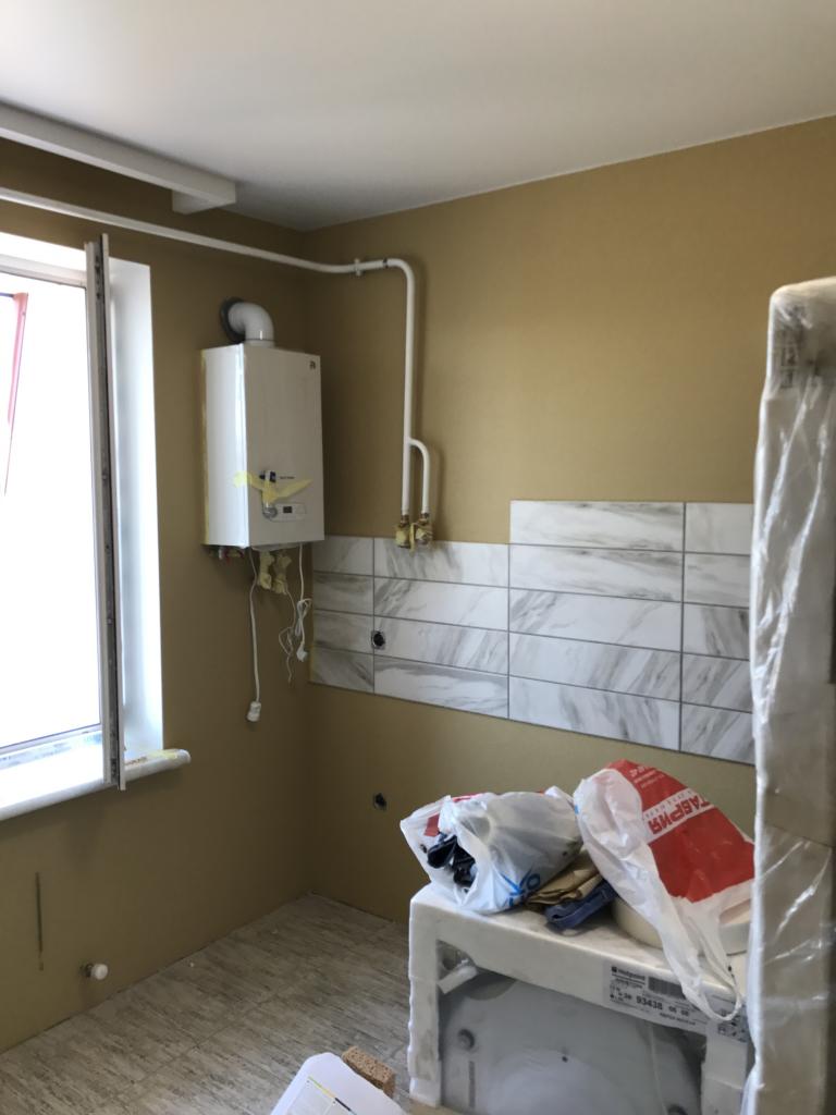 1) Плитка - готова.(остальные декор элементы,отбортовка, уголки и прочее будут монтироваться во время установки сантех фаянса)