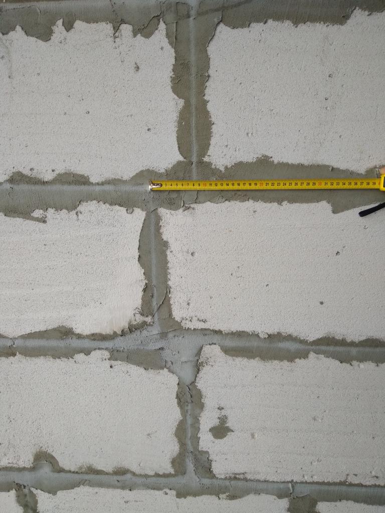 так как длина блока 60 см, получаем расстояние 6 см. Непрофессиональные каменщики советуют минимум 8 см