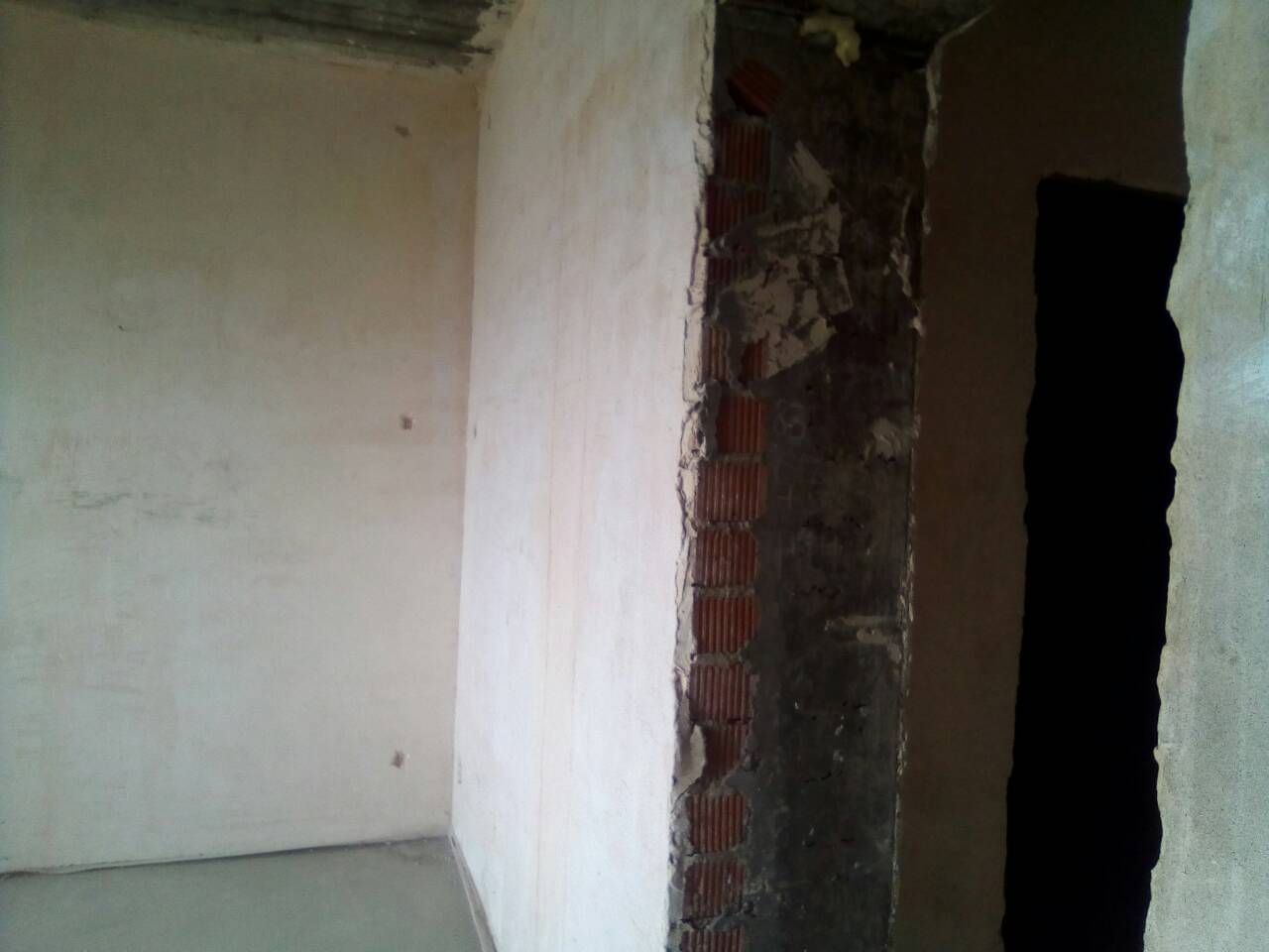 Вот такие там все стены, кроме стены, закрывающей санузел. Там в один кирпич кладка