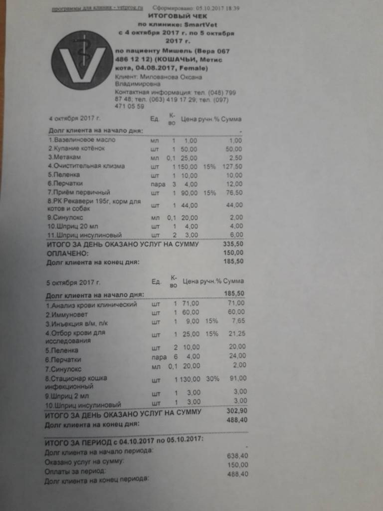 Несмотря на дорогое лечение в клиниках, мы отвезли малышку в ветклинику "Смартвет", первичный осмотр показал, что она очень слабенькая, обезвоженная, слизистые анемичные и у нее давно и сильно забит кишечник, из-за этого малышка мучается уже не первый день, не может сходить в туалет - животик просто как камень и это причиняло ей сильную боль. Причиной могут быть забившиеся паразиты, накопившиеся каловые массы, не выходящие по какой-то причине, и даже инородное тело. Мишельку оставили на стационаре, врачи будут пробовать разобраться и помочь ей.