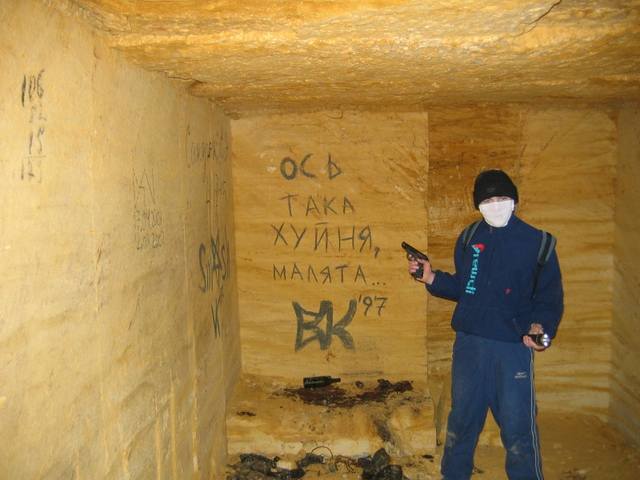 А ещё, тоже момент был, мы вдвоём с парнем ходили где-то в западной части системы, зашли в какой-то конец, а там какой то стрём, лежат 2 новые лопаты, в канале в конце уже какая то земля пошла(может шурф засыпанный), по бокам вдоль стен мешки как из под сахара, видать с землёй. Короче, мы очконули )), по быстрому свалили оттуда, особо присматриваться и разбираться не стали.. Больше туда не ходили. Так и не знаю, что это было, и кому там понадобилось копаться.. Такие дела..