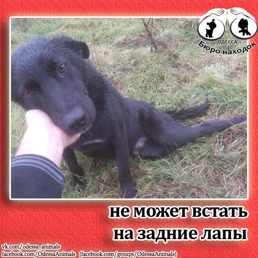 "Собака НЕ ВСТАЕТ НА ЗАДНИЕ ЛАПЫ, волочет их, лапы теплые и пытается упираться на них , ухожен и упитан, идет на контакт добродушен, кушает нормально, может чей-то, а может и выкинули, нужны люди кто бы заботился о нем, может это вылечить можно, готовы помогать материально, собаку необходимо срочно забрать с улицы погибнет!". Точный адрес по запросу.