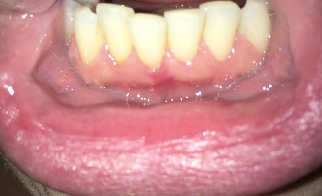 ...есть вероятность, что под десной зубной камень...но неплохо было бы и снимок этого участка увидеть, если уж заочно консультировать)))