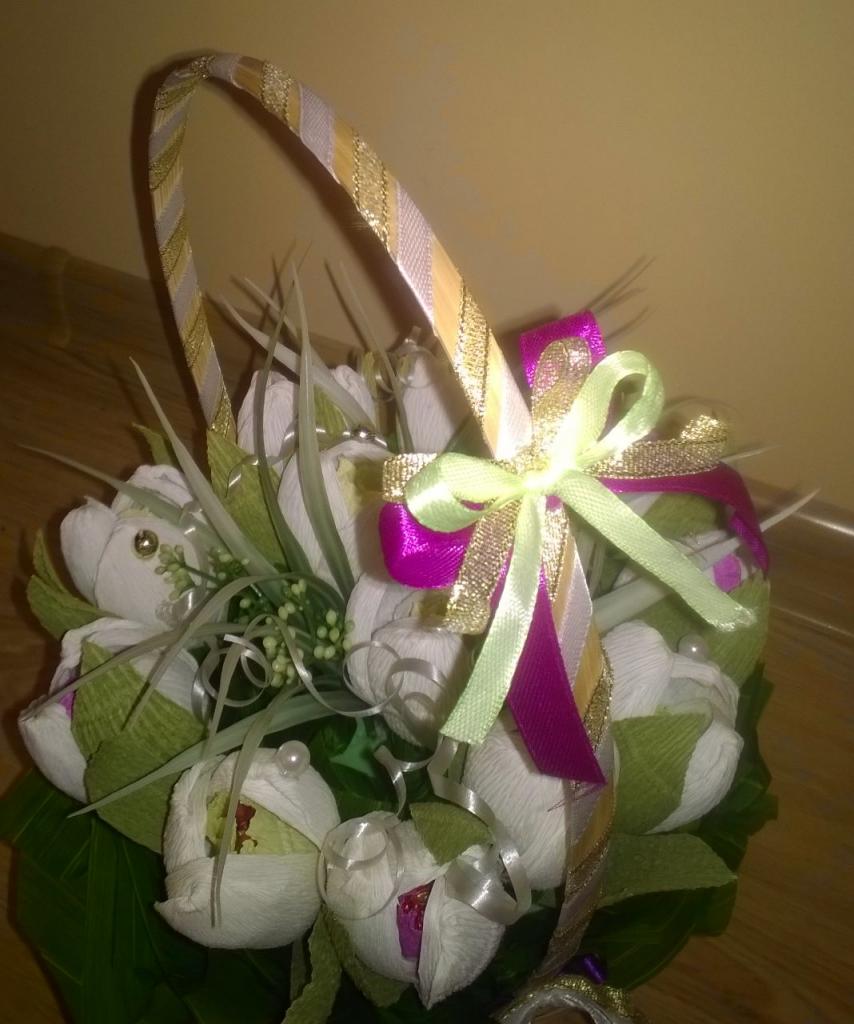 Корзина с 15 тюльпанами. Внутри каждого конфет АВК .250грн.