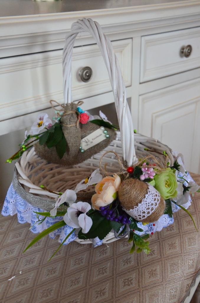 Мои корзинки украшены цветами, расшиты кружевом, очень нарядно и празднично смотрятся.