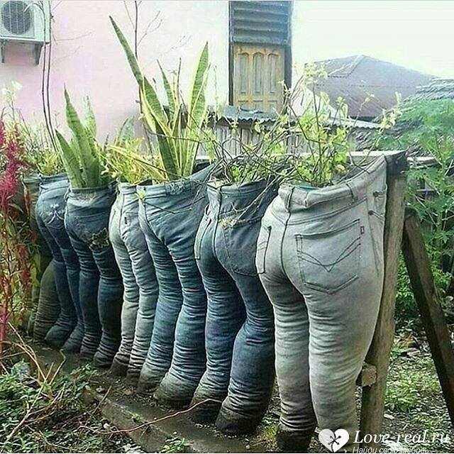 к вопросу, куда девать старые надоевшие джинсы)) А можно еще сапоги, ботинки, лифчики.... А что, развесить так на заборе креативненько...))