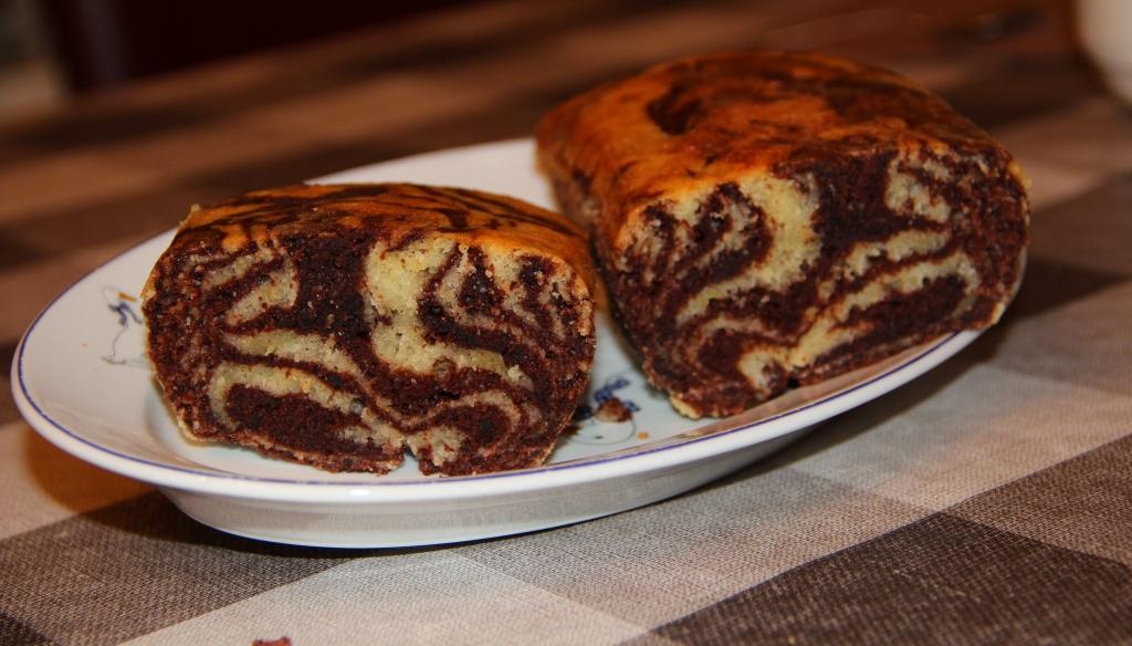 Ну вот, и полосочки получились, и кекс этот, постояв ночь, стал таки намного вкуснее и ароматнее, я добавляла цедру и ром.
