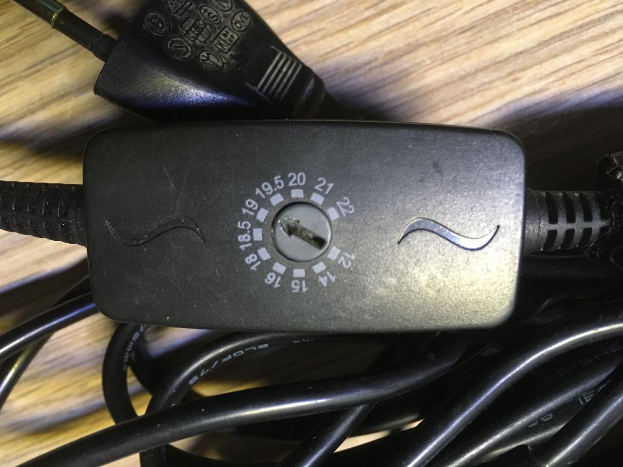 Выходное напряжение (OUTPUT): 12V 6.5A MAX; 14/15/16/18V 6A MAX; 18.5/19V 5.75A MAX; 19.5/20V 5.5A MAX; 21/22V 5A MAX.