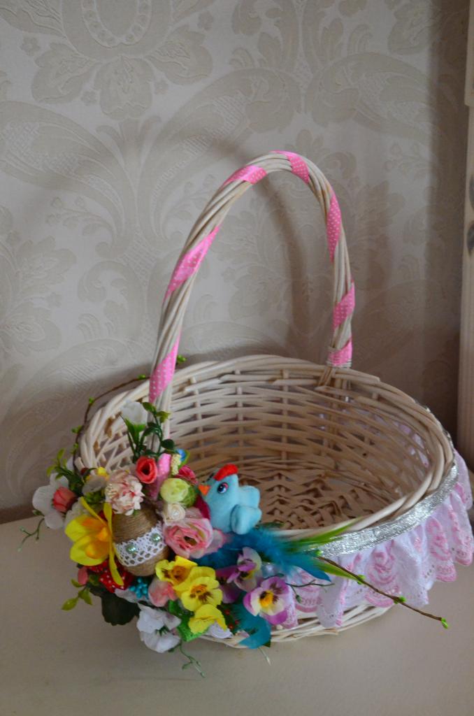Мои корзинки украшены цветами, расшиты кружевом, очень нарядно и празднично смотрятся.