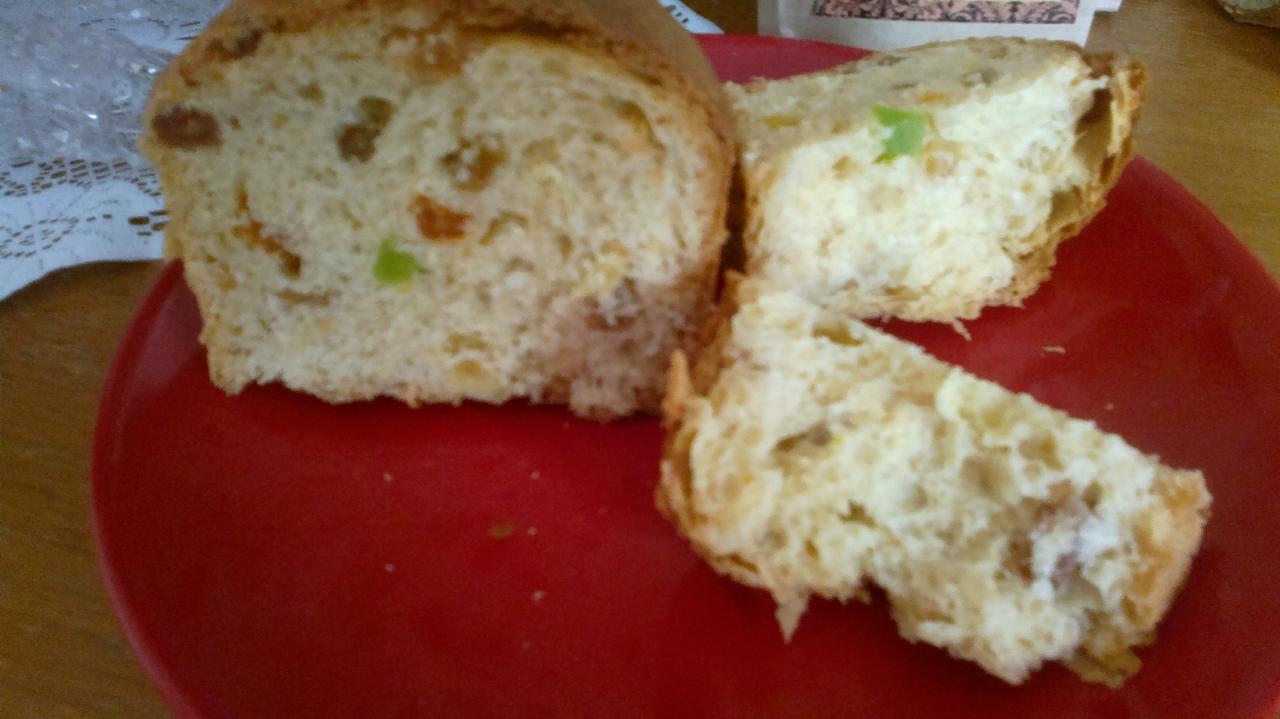 1е тесто замес сразу всего. 2е тесто - замес сразу всего, кроме масла и цукатов.