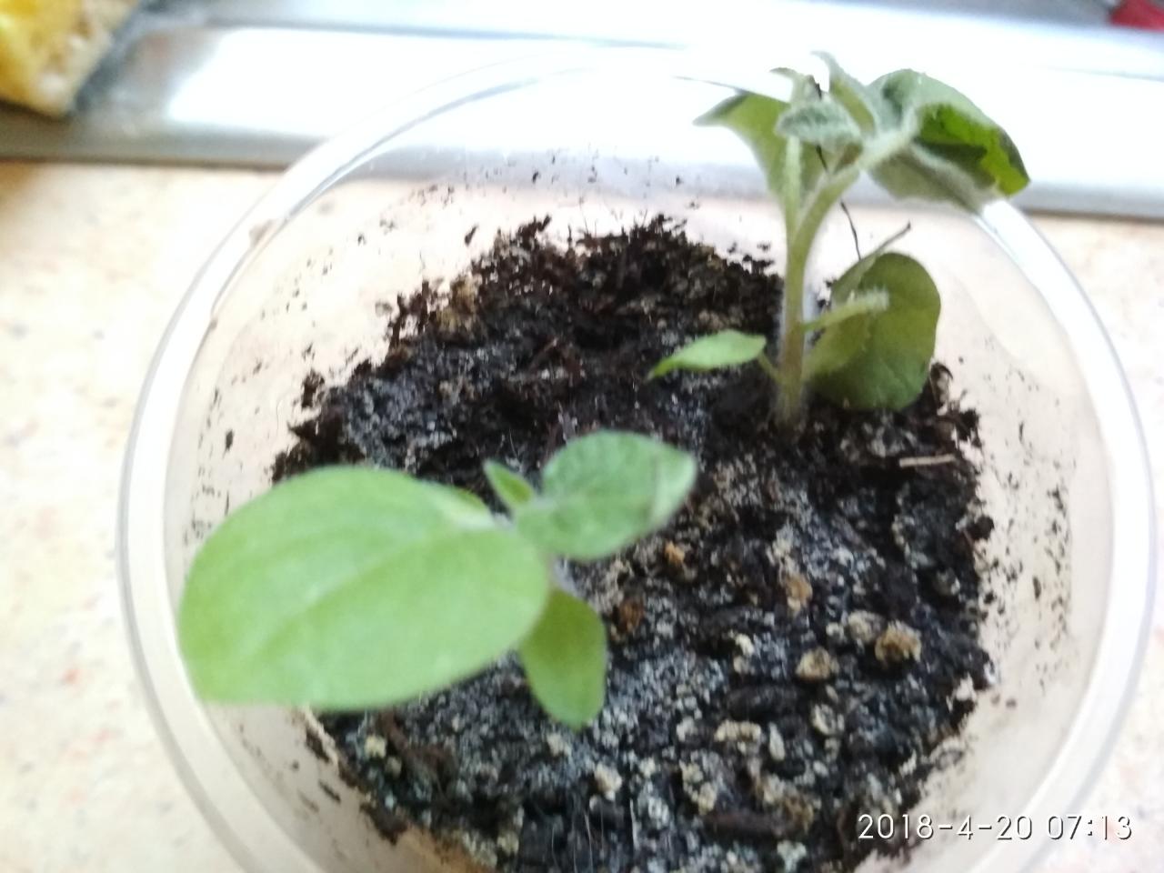 Вообще то рассаду не надо прикармливать,если хороший грунт,то должно хватить питания.Но я поливала пока не окрепли водой с перекисью водорода, делала настойку с банановых шкурок и луковой шелухи,один раз правда пролила органичным удобрением Стимовит.Но не вся у меня рассада одинаковая.Есть и заморыши... Как говорят в семье не без урода.