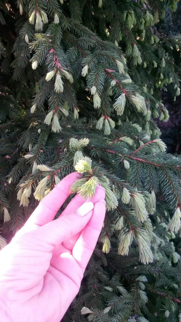 Прошлась с чашкой кофе... Туман, роса....Молодые побеги елей так и хочется губами трогать.