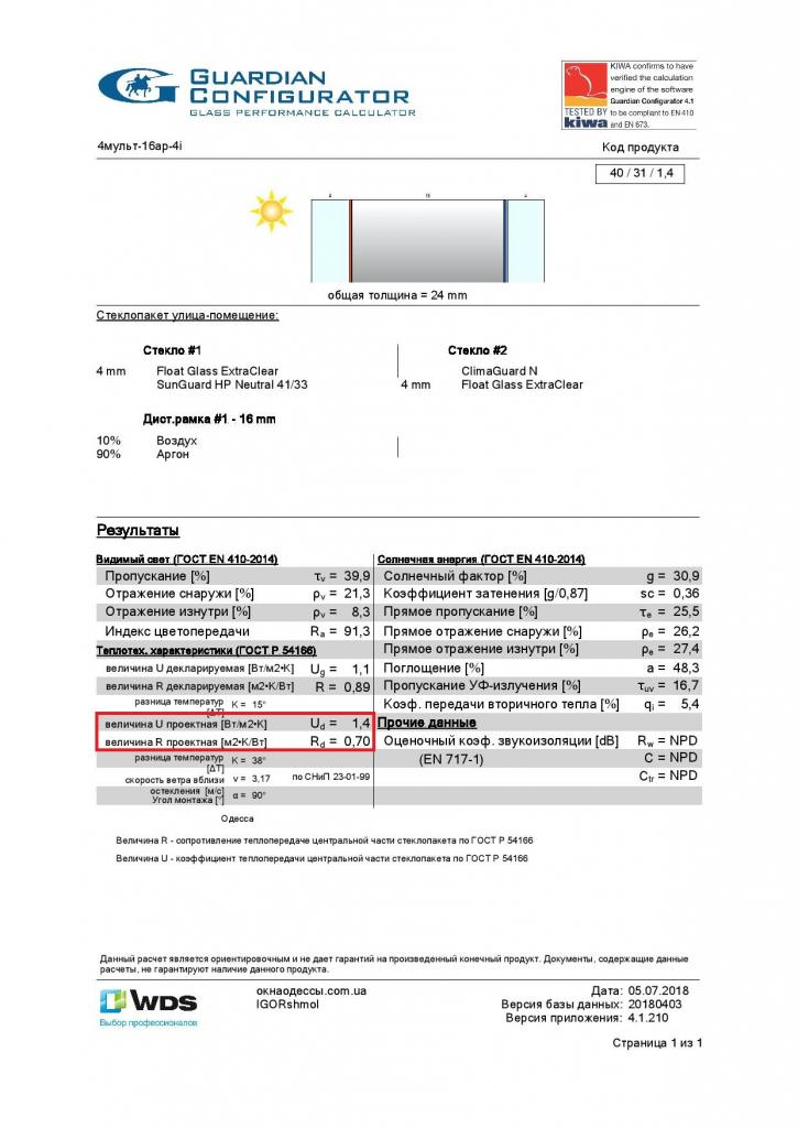 Коэффициент теплопередачи с 1 стеклом mf выходит 0.8, а со стеклом mf с улицы и i-стеклом внутри - 0.6