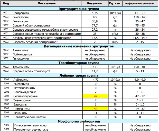 Подскажите пожалуйста. Сдала общий анализ и вот такой результат. 33 года, ничего не беспокоит, но на следующий день после анализа появился насморк. Могло ли дать отклонения?
