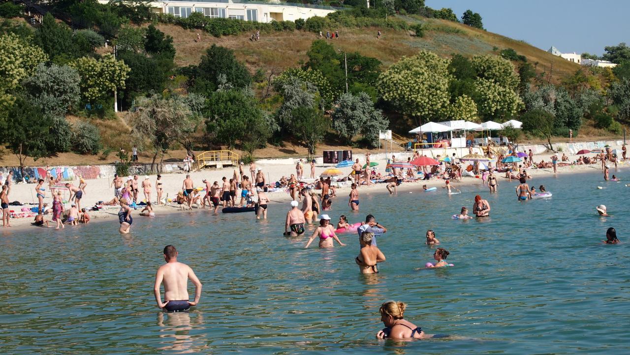 В Черноморке сегодня очень хорошая водичка- в меру чистая и прохладная(где то 22-23).Люди находятся в постоянной движухе - пришли-ушли,поэтому можно и позагорать.