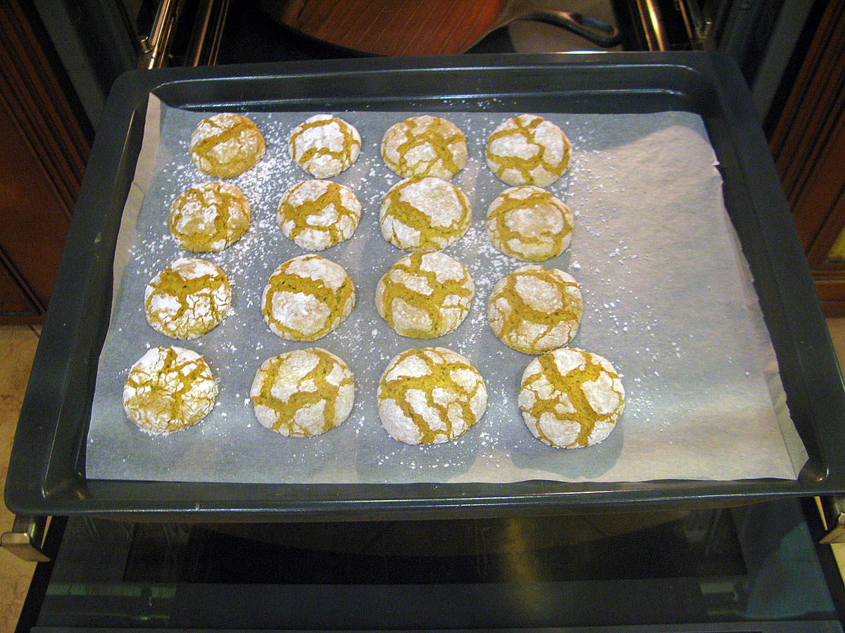 Из полученной массы катаем шарики (этот момент не смог сфоткать), обваливаем/посыпаем пудрой, и на выпечку.