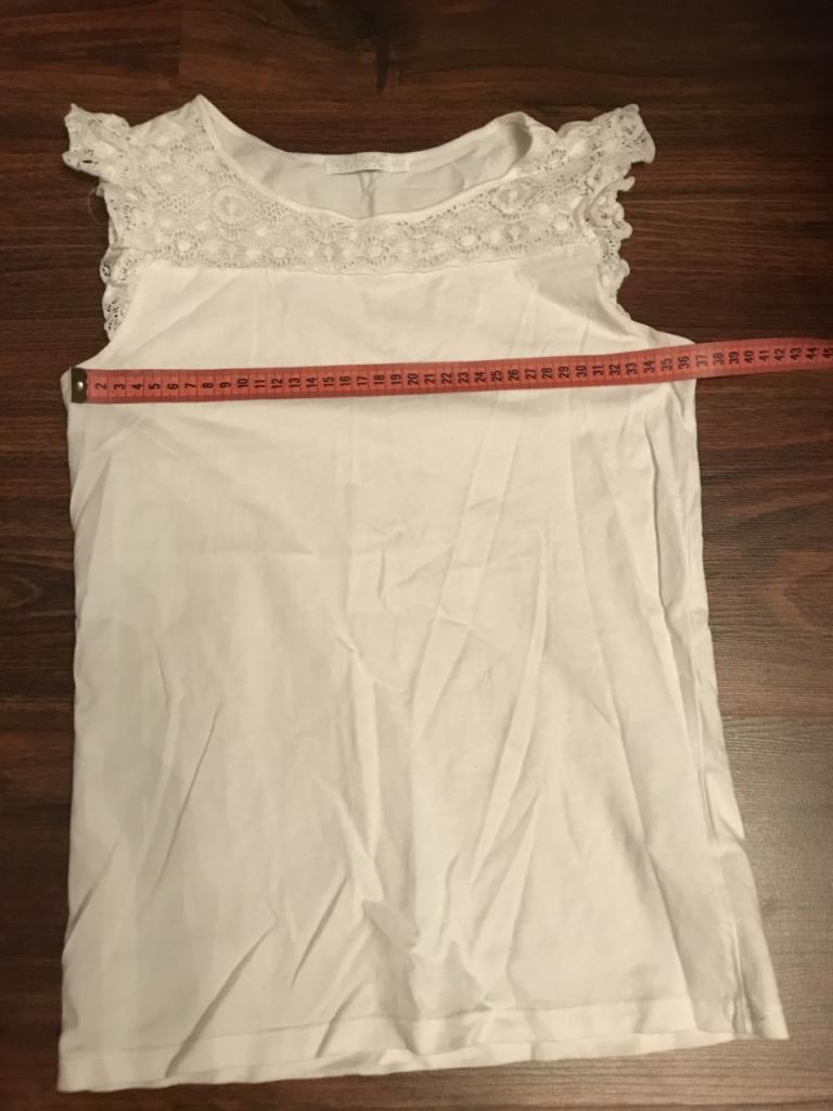 в плечах 27 см, рукав 38 см, длина 39 см, пятен нет, 100% хлопок.