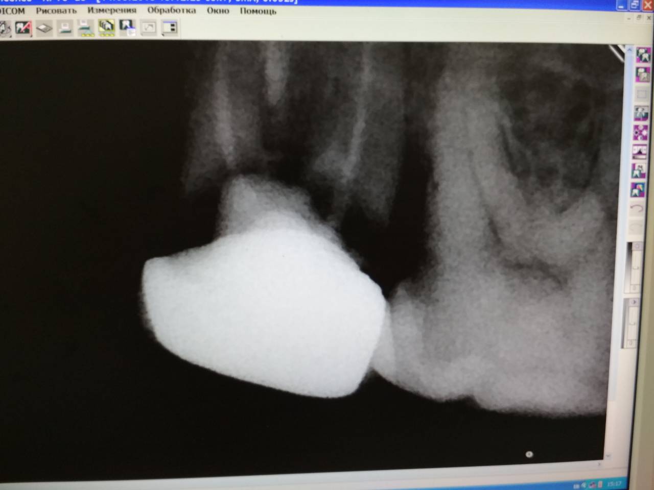 От себя добавлю: коронка , как и сам зуб стоят "мертво", никаких пошатываний зуба при попытке его покачать нет.