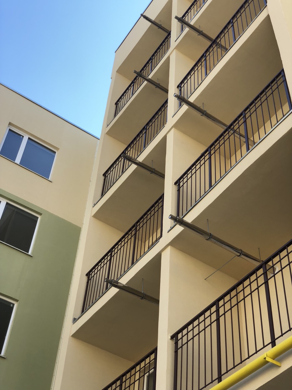 но видно, что на одном дымоходе не хватает крепления. Косяк застройщика или владелец отпилил?)))