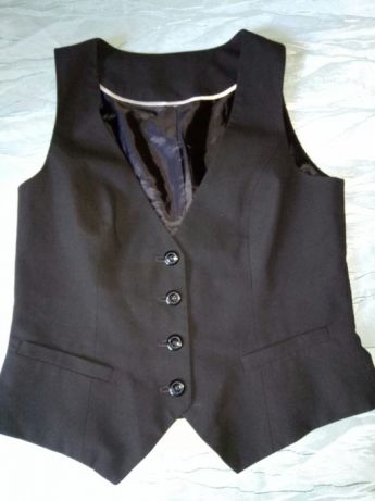 1-2. Жилет костюмный темно синий, 1-2 раза б/у, написан размер 38, на спинке утяжка. Длина по спинке 41, ширина 36. - 80,00грн.