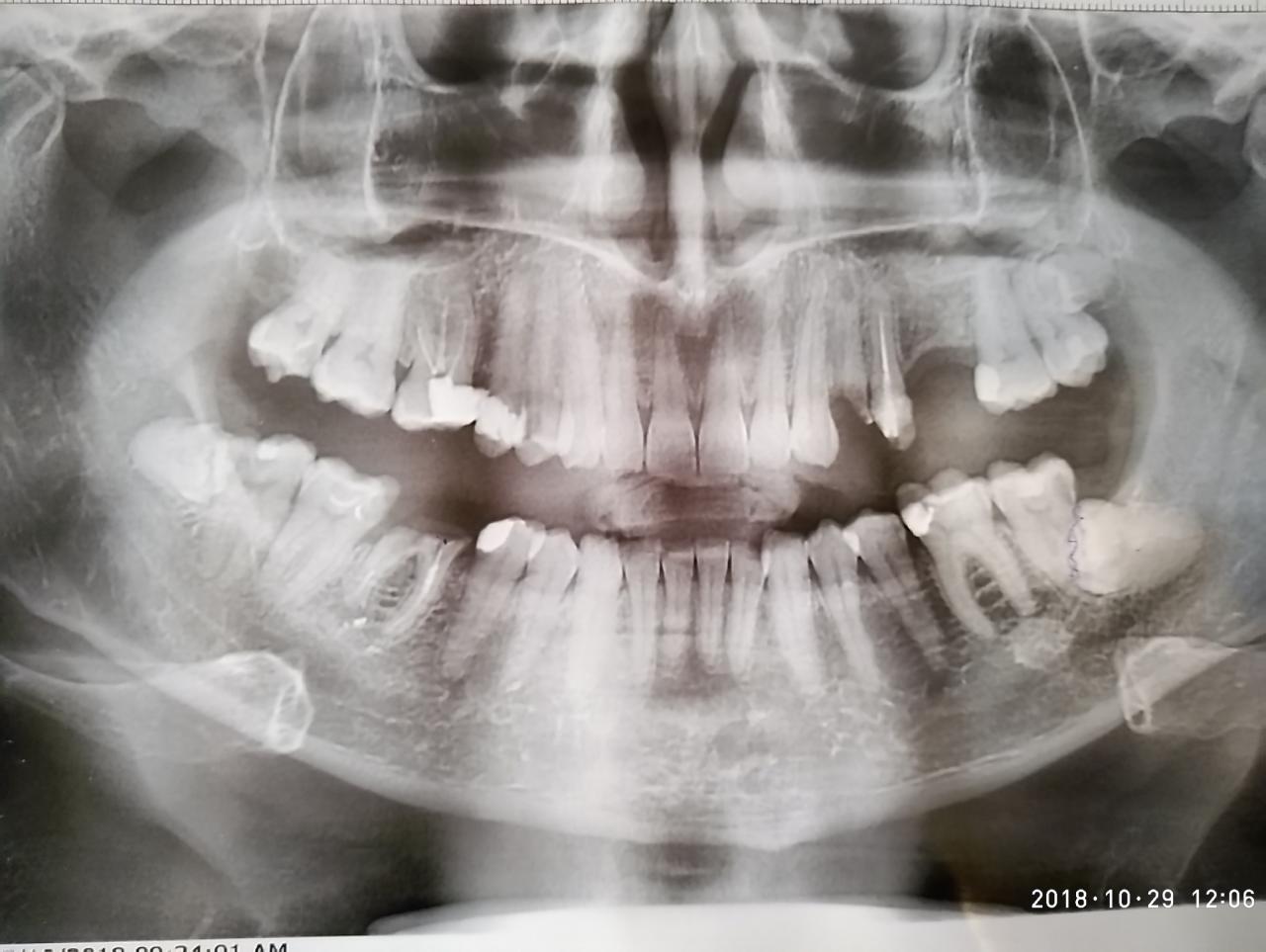 Начинать нужно с того, что определить, будет ли удаляться нижний шестой и верхний четвертый (конечное решение при осмотре у стоматолога в кресле), а затем, все что можно лечить - лечить/перелечивать/готовить для протезирования... В зависимости от выбора мостовидного протеза, опорные зубы либо депульпируют, либо нет. Такие зубы мудрости, как у Вас, не любой хирург может удалить.