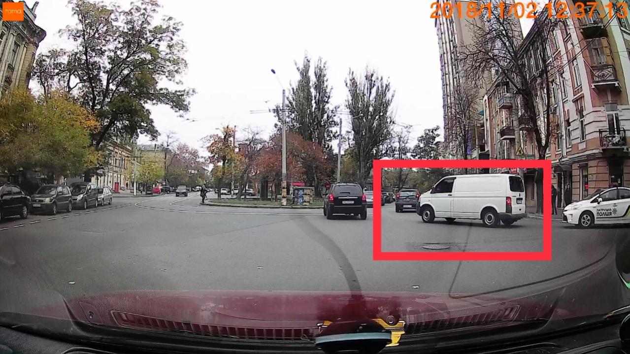 ДТП между белым VW микроавтобусом и легковым автомобилем серого цвета в красной рамочке? Черный Тушкан просто объезжает?