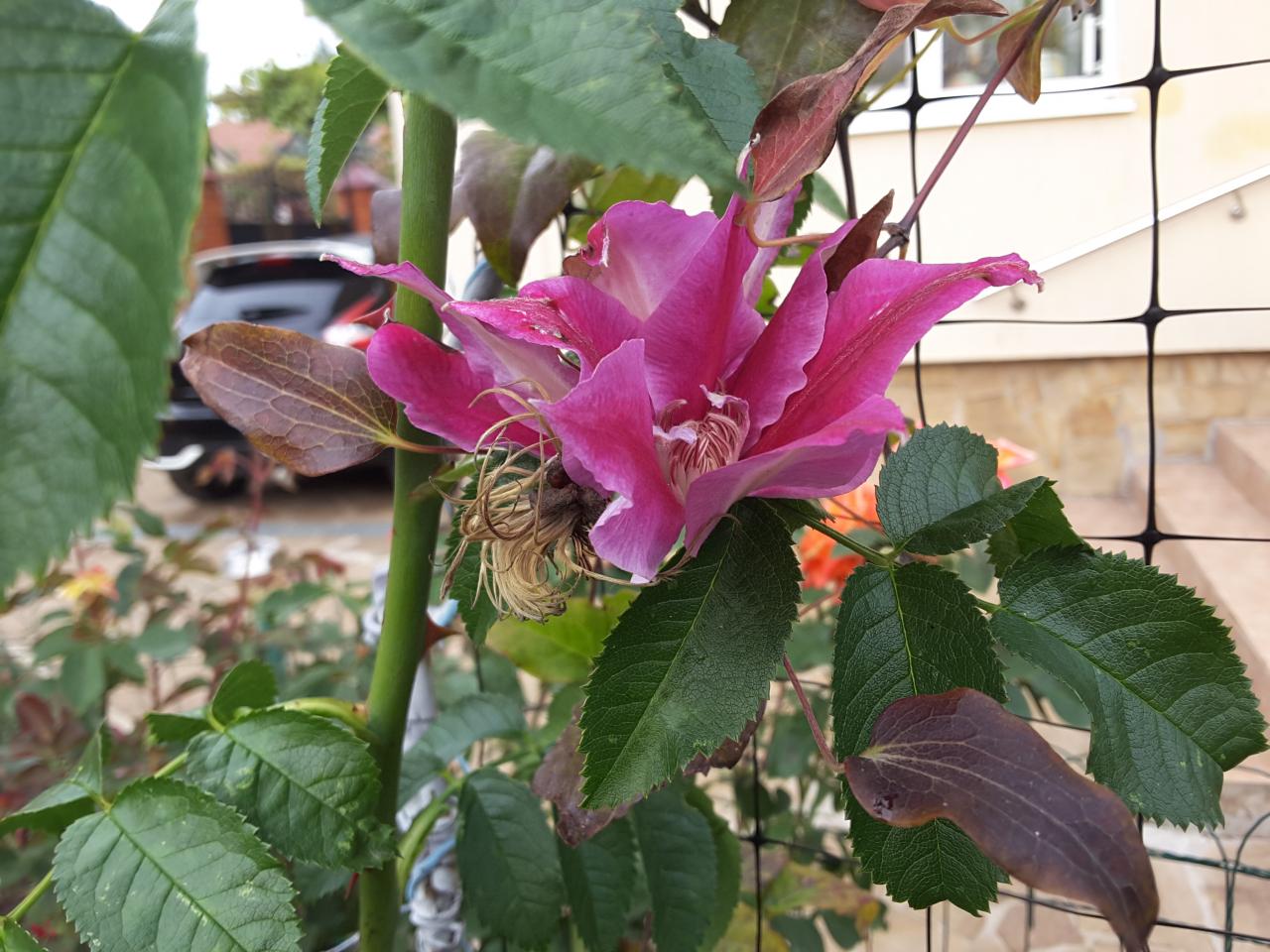 Розы радуют,цветут и пахнут....Клематис вдруг выпустил непонятный цветок,и хризантемы во всей красе