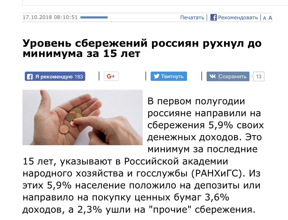 Норма сбережений рухнула до уровня 2003г.