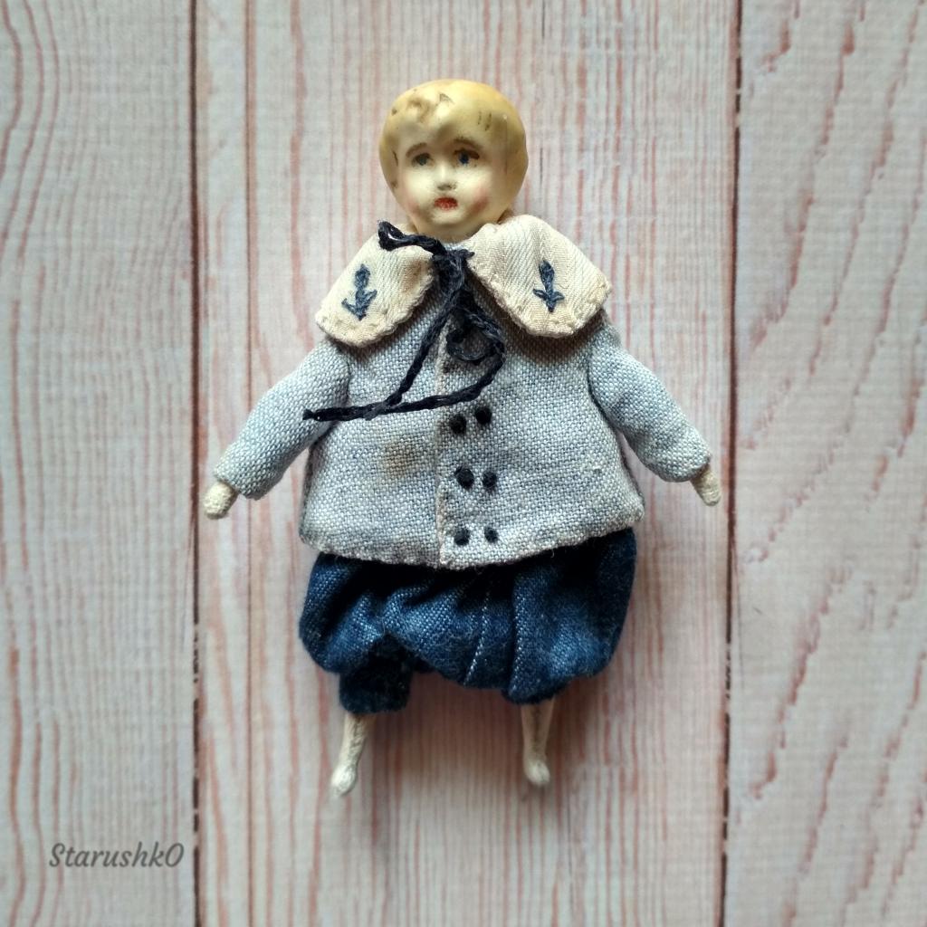 Мини куколки пошиты из натуральных тканей (лен, фланель, коттон), наполнены ватой и стеклянным гранулятом, очень приятны тактильно. Головки кукол могут быть двух видов - из льна или копия антикварной головки, отлитая и расписанная вручную.