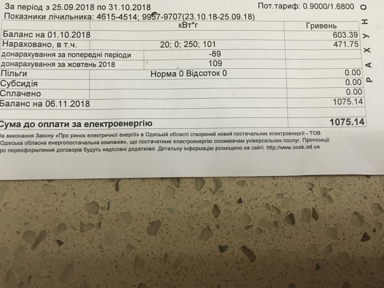 Та хз с этими платежками, только что пошел посмотрел за октябрь - двухтарифный счетчик, по одному тарифу 100 по другому 250 кВт, общая сумма на 1065грн, как так?