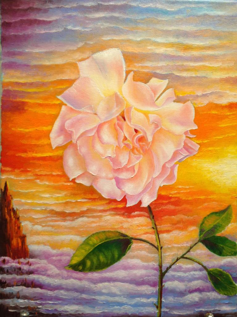 "Роза", холст, масло, размер без рамы: 30см х 40см , 2017 год, цена : работа 500 гр + 250 гр рама.