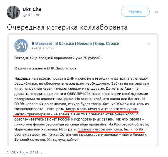 Скрепный коллаборант даунбассец ультимативно требует цену в два раза меньше.