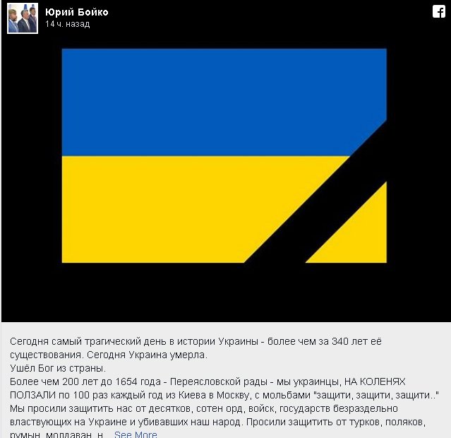 Про пост Юрія Бойка "Сегодня самый трагический день в истории Украины - более чем за 340 лет её существования. Сегодня Украина умерла" і так далі по тексту.