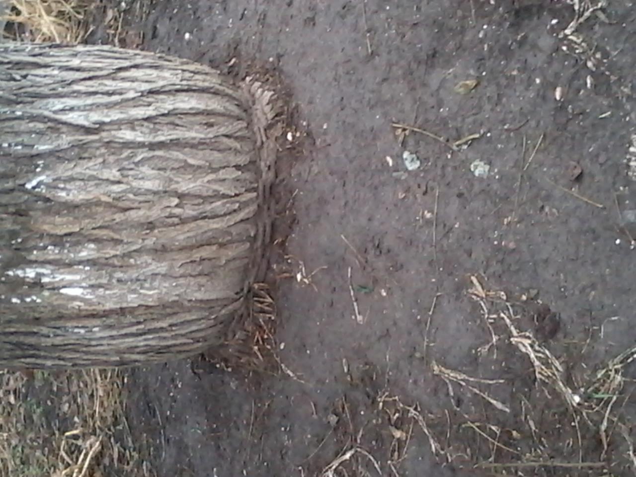 Около дома (ДнепроДорога, 76), в полуметре от оживленного тротуара растет крупное дерево перетянутое в основании ствола цепью.