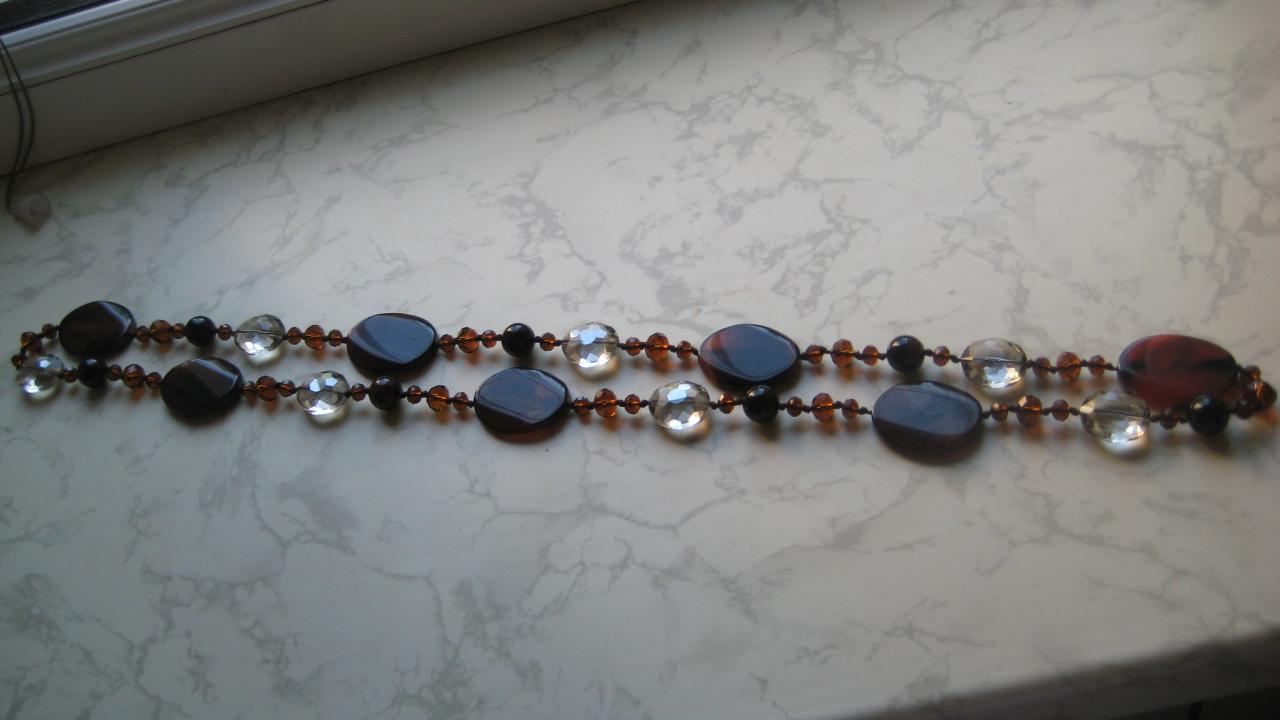 Продам шикарные бусы длиной 110 см, состоящие из агата (крупные плоские и круглые бусины) и бусин чешского стекла ( белые крупные и коричневые мелкие гранённые бусины).