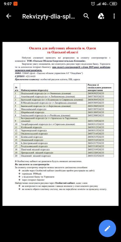 Э/энергию,потребленную до 1 января 2019 необходимо оплачивать по старым реквизитам,то есть «Облэнерго»