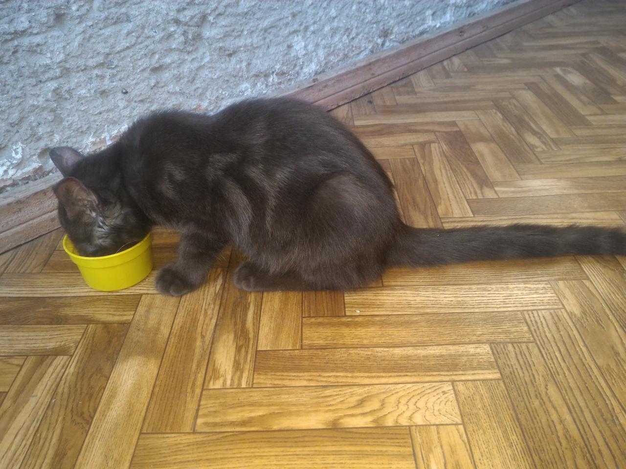 Принесла домой, накормила (корм 30 грн), глаза обработала ромашкой, уши почистила "росинкой", ватки грязные были после чистки. Наверняка клещ еще.