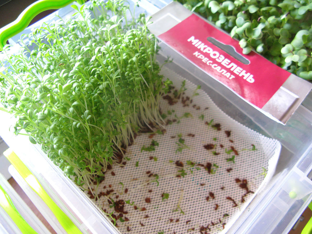 Урожай готов на 7й день. На 8-9день появляется 3й листик.