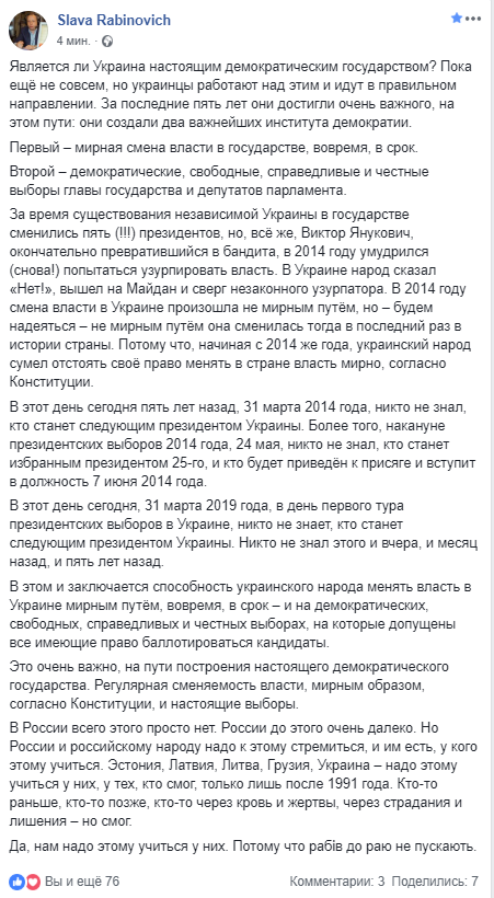 Да поучится есть чему.. Гройсман, Винница, 20 февраля 2014 года. В Киеве гражданская война с его слов. Вы признаете януковича президентом? - Мы направили в Киев 4 скорых помощи. Так признаете или нет, да или нет? - Стране нужна децентрализация. Так да или нет? - Та голосуйте как хотите здесь, хоть да, хоть нет. https://youtu.be/-lQhpBz_zAg