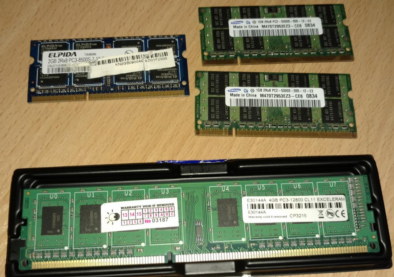 Для ноутбуков: DDR2 2 планки по 1Гб Samsung DDR3 1 планка на 2 Гб Elpida Для ПК: DDR3 1600 1 планка на 4 Гб Excelram - отдана хорошему человеку Цена: 200 грн за оставшееся Подробности на фото:
