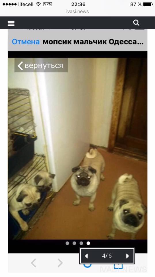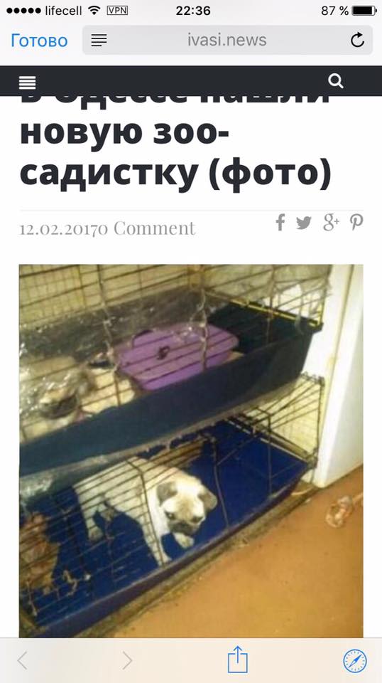 Как так можно??? Одесса!! И это ......стоит на Староконке около Приват банка. Ее мопсы сидят в собственных фекалиях, она продаёт по 3 тыс собак......в жутком состоянии. С кучей инфекций. Мопсники, кто знает об этой особе информацию? Неужели ничего нельзя сделать? Как долго будут продолжаться эти издевательства? Им кидают заплесневелый хлеб ......они мучаются, в коробках картонных сидят пекинесы ....Прошу не безразличных одесситов распространить. И сделать эту сволочь известной! Продолжают поступать на неё жалобы, были уже привлечены журналисты, многие пытались выкупить мопсов. Но она продолжает над ними издеваться ,не кормить и держать в жутких условиях.