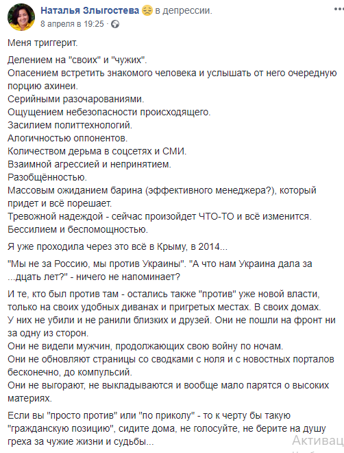 За "отстаньте от русскоязычных", часть из которых внезапно (?) "повстанцы". За "просто перестать стрелять", за "договориться посередине".
